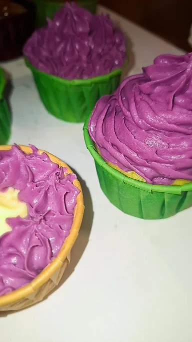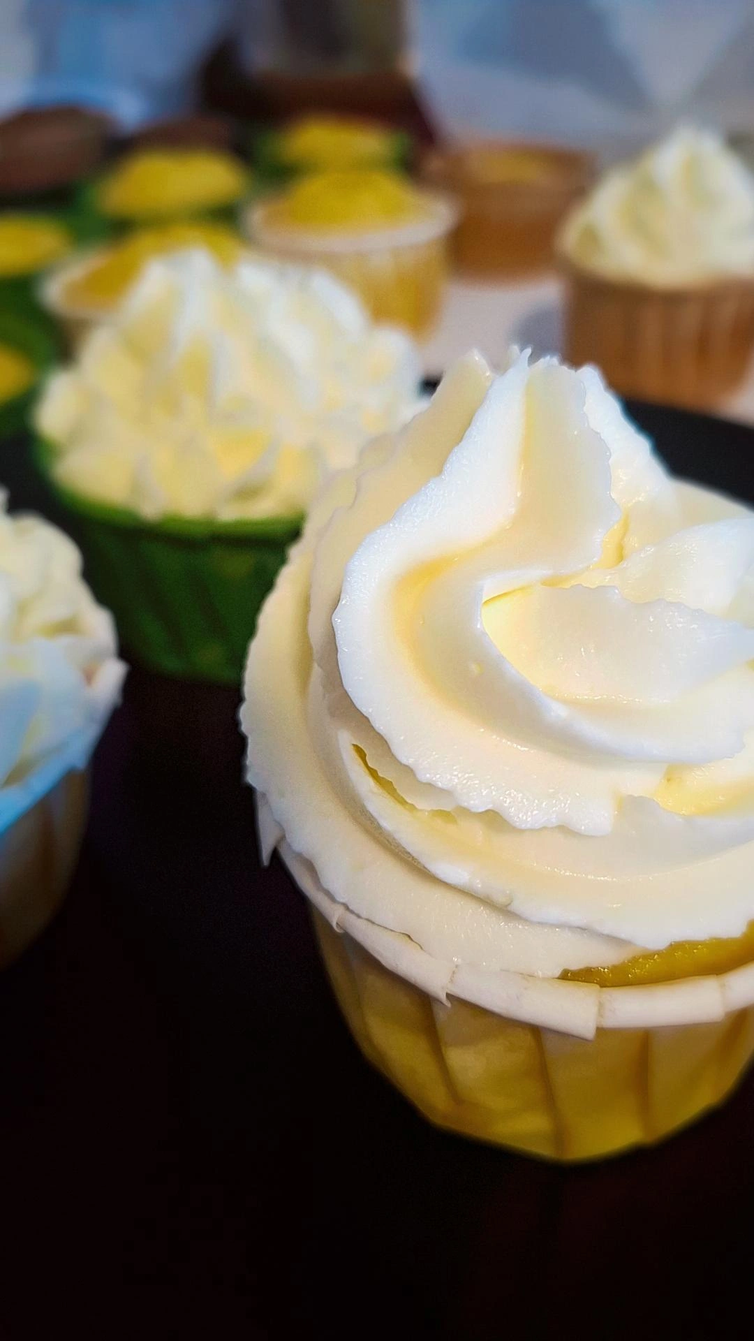 Vanilijev cupcake z belo čokolado in črnim ribezom