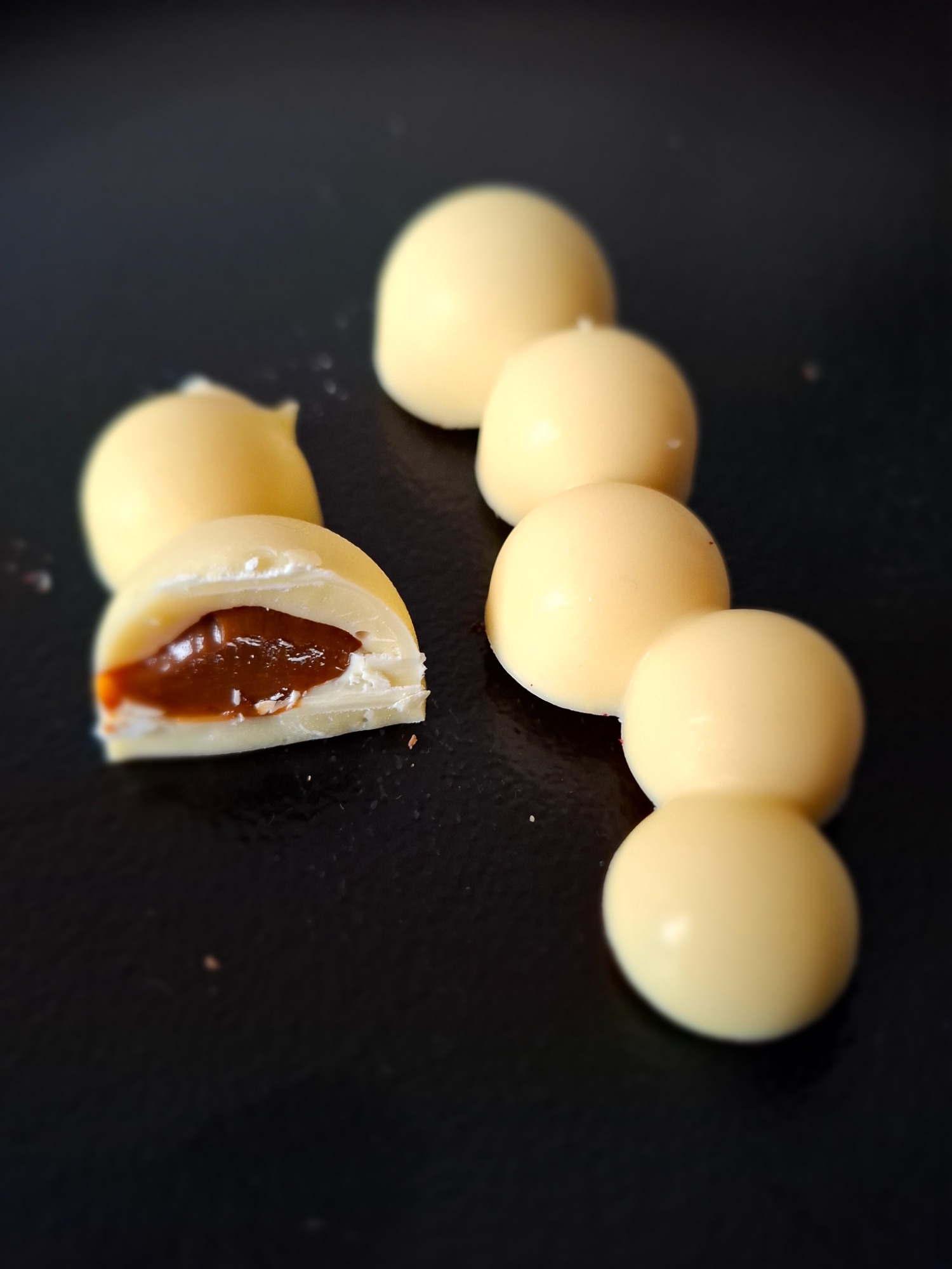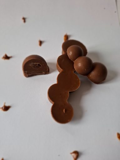 Kremasta mlečna čokoladica s tekočo slano karamelo, ki ob ugrizu ustvari popolno ravnovesje med sladkim in rahlo slanim. Bogat okus in mehko