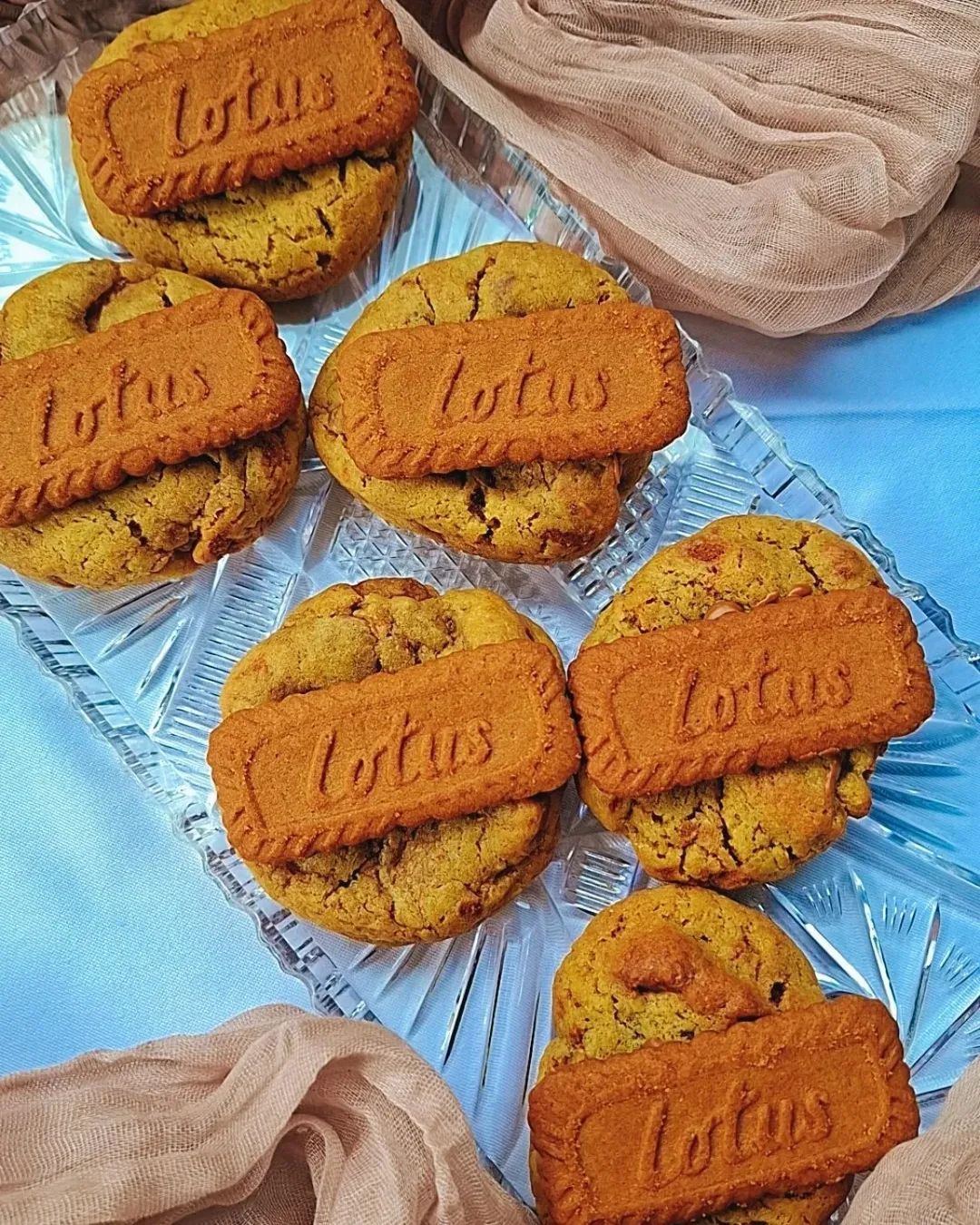 Mehki cookies z bogatim okusom Lotus piškotov in kremastim Lotus polnilom v sredini. Prijetno sladki, polni okusa in popolni za razvajanje