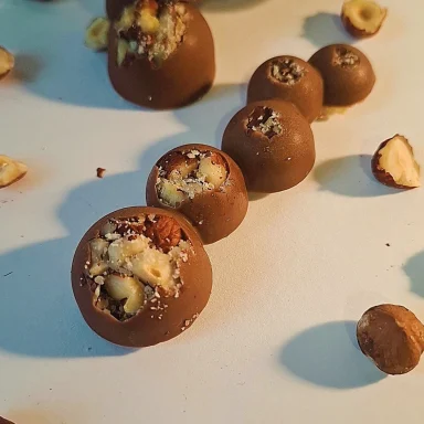 Bogata mlečna čokoladica z izbranimi lešniki, ki dodajo prijetno hrustljavost in poudarijo poln, oreškast okus. Klasična kombinacija